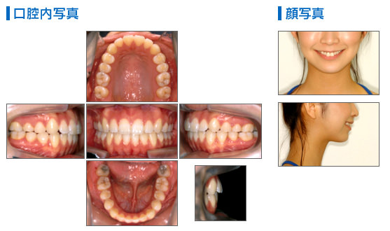 レントゲン写真、口の中の模型、顎の位置の固定、顔や口の中の写真を撮ります。